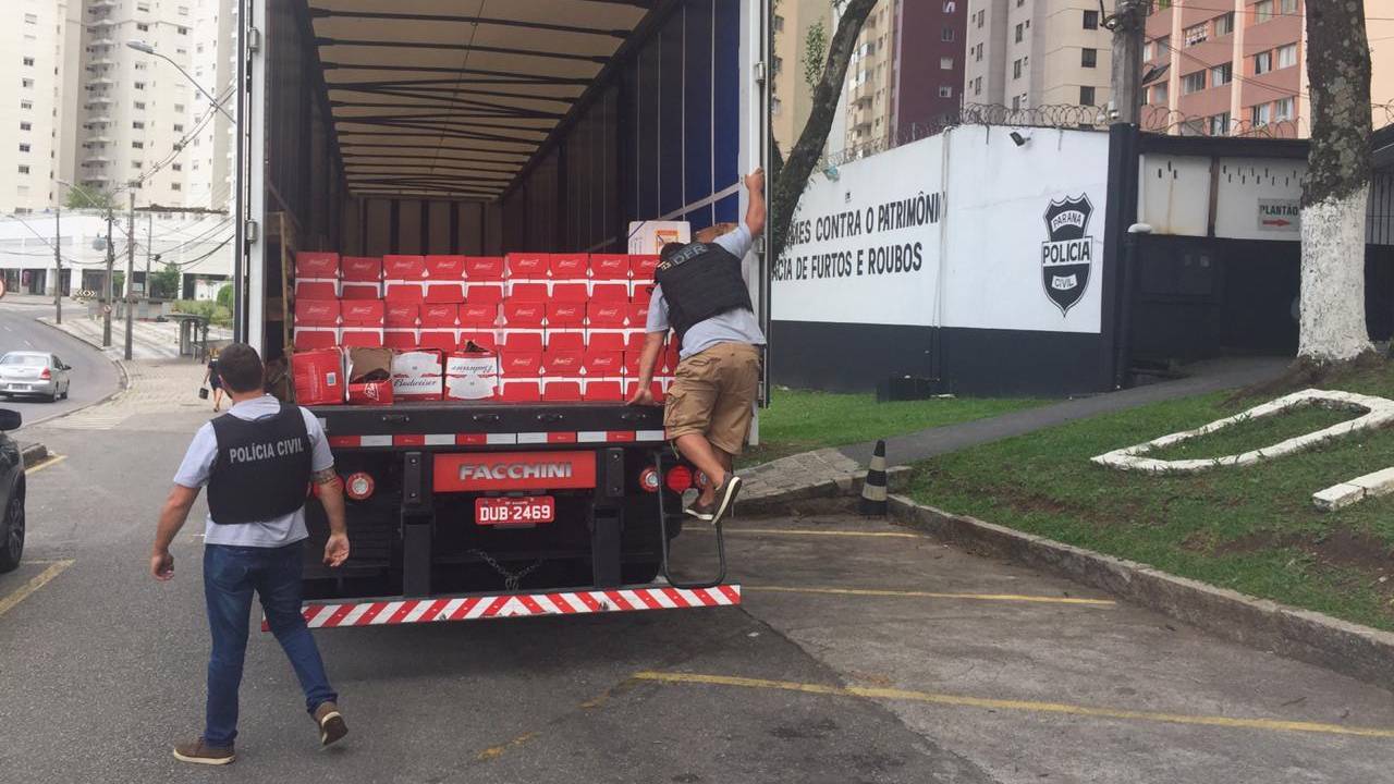 A Polícia Civil recuperou na noite de segunda-feira (4) uma carga de 1,2 mil caixas de cerveja roubadas. As bebidas estavam no depósito de um supermercado em Colombo, região de Curitiba. Avaliada em R$ 116 mil, a carga havia sido roubada dia 31 de outubro em São José dos Pinhais, também na região metropolitana.