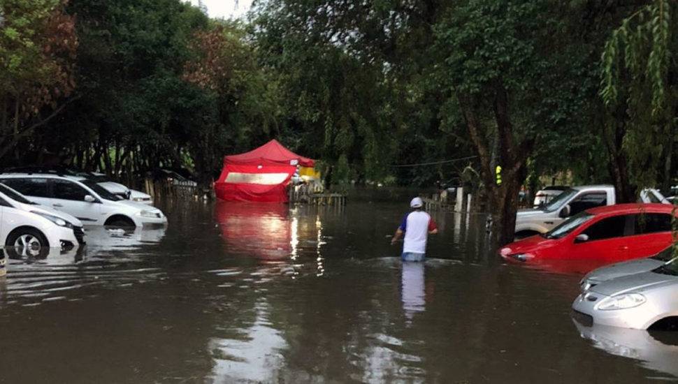 O temporal que atingiu Curitiba na noite de domingo (09) provocou um alagamento nas proximidades da Vila Capanema, onde acontecia o jogo entre Paraná Clube e Cianorte, pelo Campeonato Paranaense 2020.