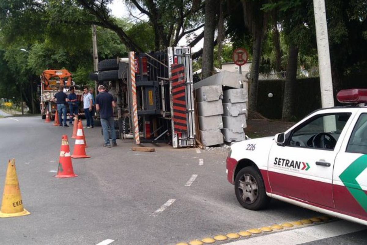 Um caminhão carregado de postes tombou na Avenida Fredolin Wolf, no bairro Pilarzinho, no início da tarde desta terça-feira (19). O acidente aconteceu por volta das 13h30, quando o veículo trafegava pela rotatória que daria acesso à Rua Ari José Vale. Segundo a Superintendência Municipal de Trânsito (Setran), por causa do acidente, uma das faixas teve de ser bloqueada por quase uma hora na região.