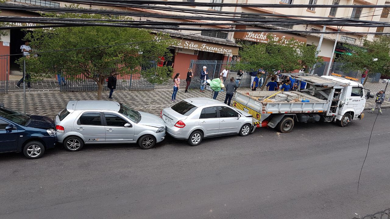 Segundo a vendedora Arilda Balles, que também trabalha na região, esse trecho da Mateus Leme possui uma leve inclinação e o caminhão estava no local mais alto, quando desceu de ré e empurrou diversos veículos. “Três carros estragaram mais que os outros e todos eles estavam vazios na hora. Ainda bem”, comentou.