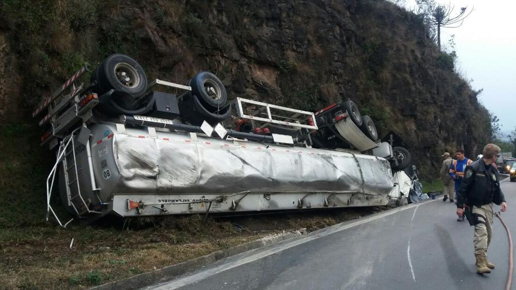 Um caminhão-tanque que seguia para a Argentina capotou na BR-476, na Lapa – Região Metropolitana de Curitiba – e interdita parcialmente a via no sentido à capital paranaense. O acidente foi registrado no quilômetro 192 por volta das 16h30 de terça-feira (21) e, até 10h10 desta quarta (22), uma das faixas seguia bloqueada. O condutor do veículo morreu no local.