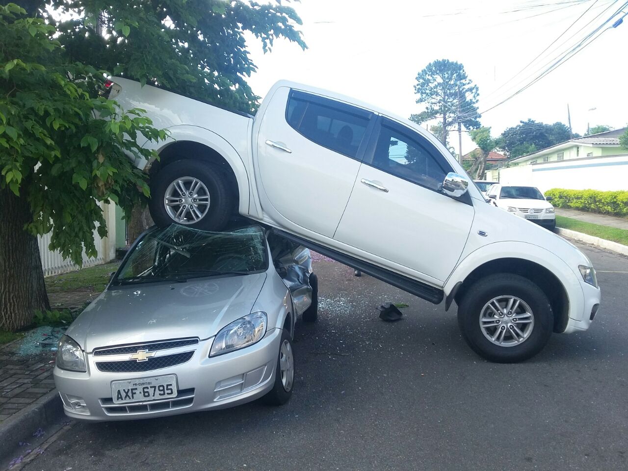 Os moradores da Rua Professor Thomaz Wartelsteiner, no bairro Portão, em Curitiba, acordaram com uma cena surpreendente no último sábado (28): uma caminhonete foi parar em cima de outro carro.