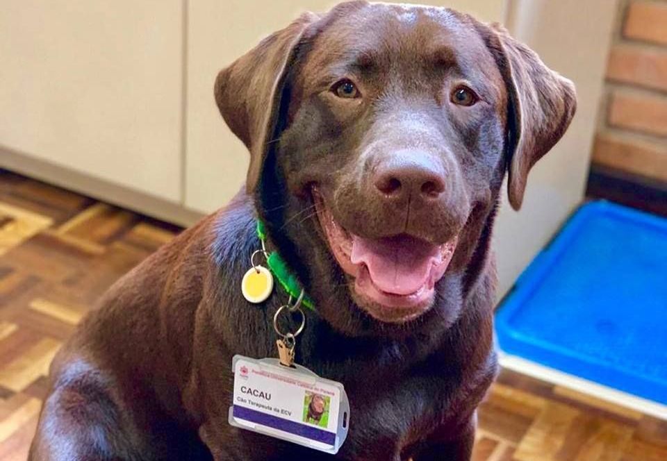 Quem nunca ficou ansioso ao ir ao dentista? Na Clínica Odontológica da Pontifícia Universidade Católica do Paraná (PUCPR), que atende 350 pessoas carentes pelo Sistema Único de Saúde (SUS), esse medo dos pacientes tem sido aliviado graças à ajuda de uma cadelinha da raça labrador. Cacau, de apenas nove meses de idade, tem feito a diferença no trabalho dos dentistas e dos estudantes de odontologia atuando como cão terapeuta. Ao ponto de até ganhar um crachá de funcionária do consultório, concedida pela própria reitoria da universidade.