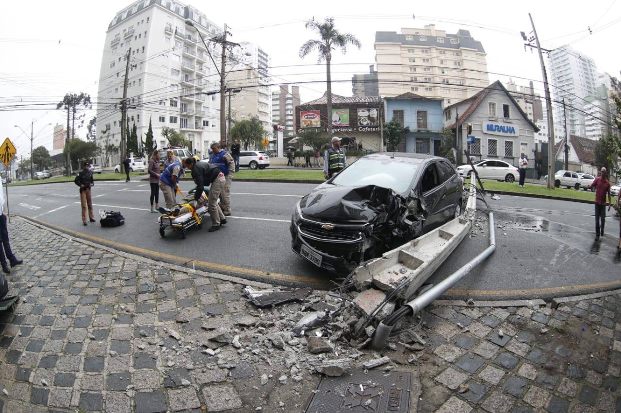 O motorista do automóvel, de 69 anos, ficou ferido. Ele foi socorrido pela ambulância do Samu com ferimentos moderados e levado para o Hospital Evangélico Mackenzie.