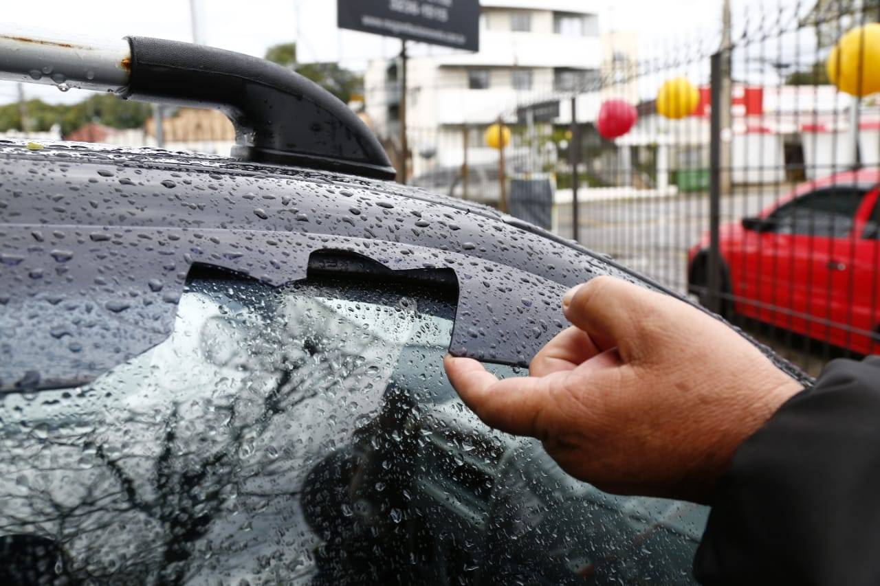 Os estragos causados pela tempestade na manhã desta quinta-feira (30) não foram poucos. A loja de automóveis Magnett, em Curitiba, teve oito carros disponíveis para venda danificados pela chuva de granizo. No momento da tempestade, os veículos estavam fora da cobertura da loja e tiveram a lataria do teto e capô amassados, além de calhas nos vidros quebradas.