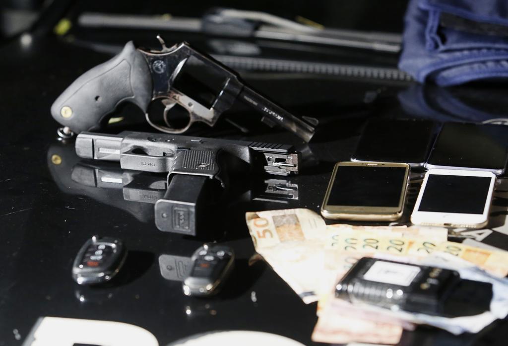 A PM foi ao endereço, onde não encontrou o menor suspeito, mas apreendeu o revolver calibre 38 roubado do vigilante do supermercado e uma pistola calibre 9 milímetros com carregador alongado. Alguns dos celulares levados da loja também estavam na casa no Cajuru.