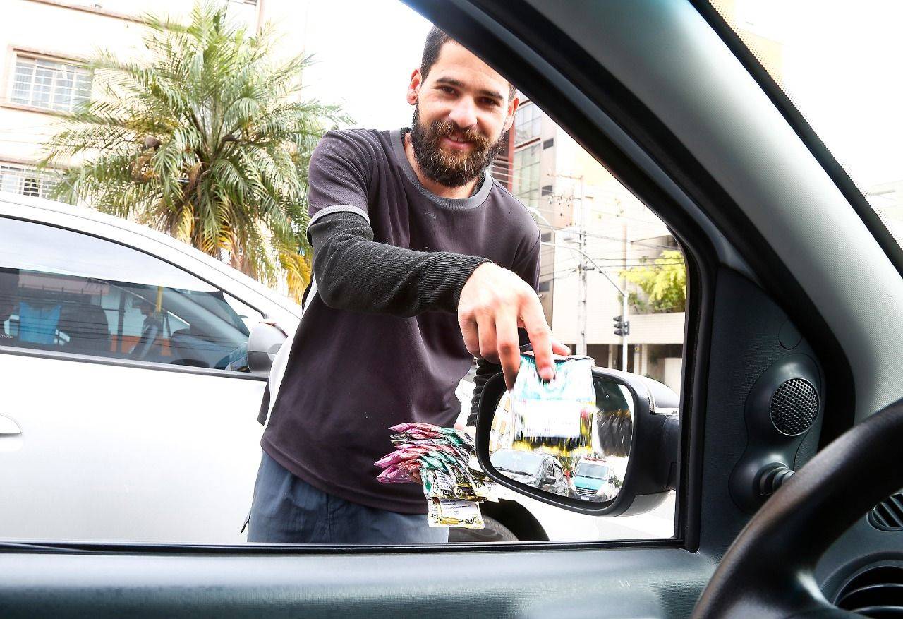 Para alcançar o sonho, o vendedor, que dorme em um dos abrigos oferecidos pela Fundação de Ação Social (FAS), da prefeitura de Curitiba, percorre quase 1 km por hora com o objetivo sempre em mente. A ocupação é nova. Quando chegou a Curitiba pela segunda vez, em 2017, o mineiro começou a vender iogurtes naturais caseiros na rua e com o dinheiro investiu em uma bicicleta. O transporte virou meio de trabalho e com ela passou a fazer entregas de aplicativos. “As entregas eram boas, mas o retorno era pequeno. Então, um amigo me apresentou o trabalho informal de vender balas no sinaleiro”, conta.