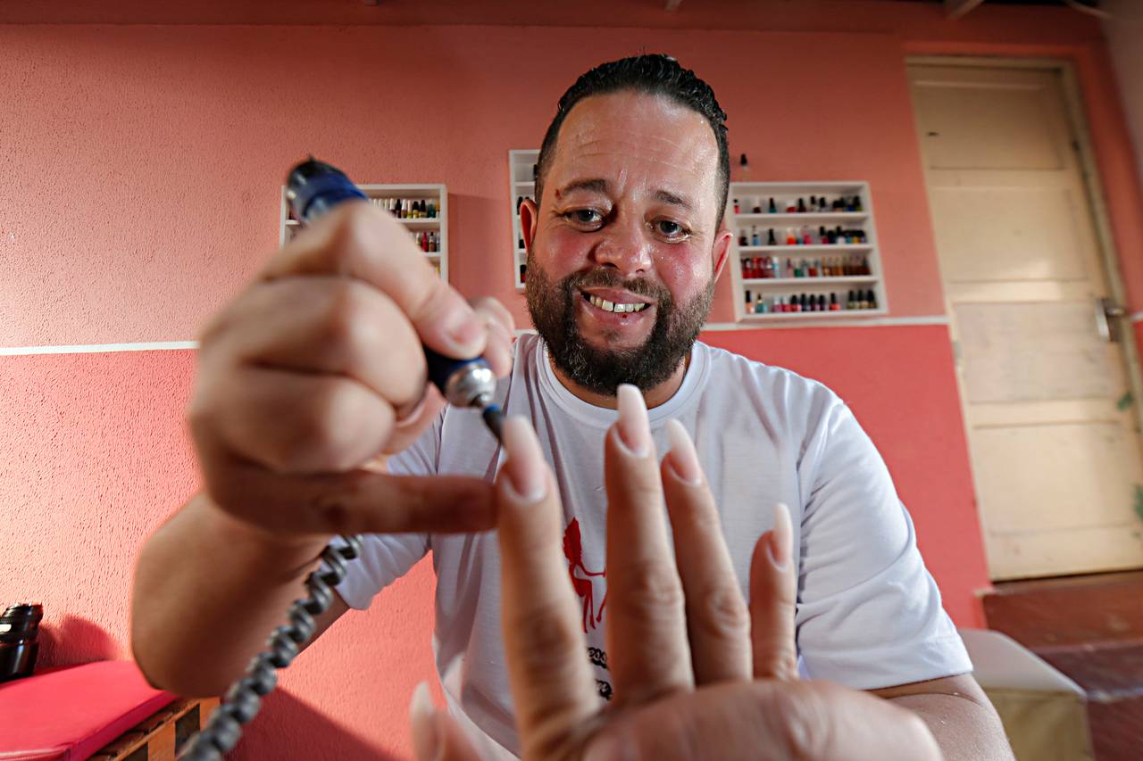 Depois de oito anos trabalhando como vigilante, Robson Aparecido Barbosa, de 42 anos, aprendeu a desmanchar a cara fechada e soltar um riso fácil. O agora manicuro combate a depressão que veio dos anos na área da segurança embelezando as unhas de clientes no Boqueirão, em Curitiba.