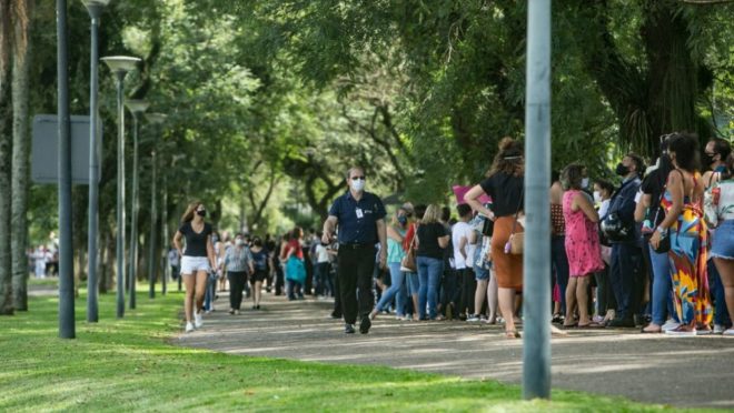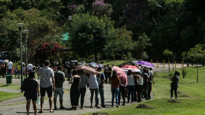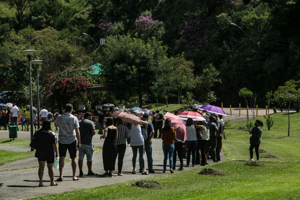 Quem foi se vacinar da Covid-19 nesta quinta-feira (25) está tendo de ter muita paciência. No pavilhão do Parque Barigui há pessoas que estão até 4 horas debaixo de sol quente esperando para tomar a imunização. Nesta quinta, a prefeitura também confirmou que se o Ministério da Saúde não enviar novo lote de vacinas, as doses acabam sábado (27).