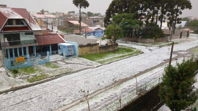 A quantidade de granizo foi muito grande em algumas regiões de Curitiba. No entanto, não há como saber se o volume é histórico porque o Simepar não realiza medições de granizo. Já o volume de chuva foi pequeno, cerca de 9 mm, e ventos moderados, de até 43,9 km/h. “Foi rápido, durou cerca de 30 minutos. Foi uma área de instabilidade que se intensificou no sul de Curitiba, formando a nuvem que provoca granizo”, explicou o meteorologista do Simepar Paulo Barbieri.
