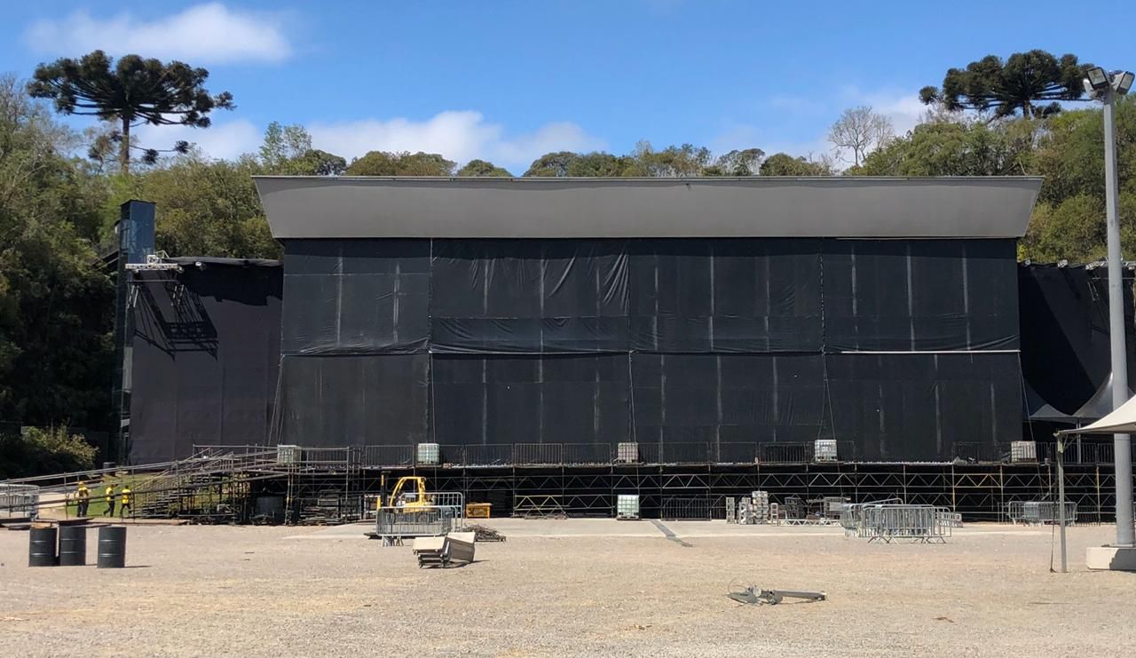 O palco da Pedreira Paulo Leminski, em Curitiba, virou uma grande caixa-preta. Pela primeira vez na história do espaço, o palco está vedado com uma grande lona preta.