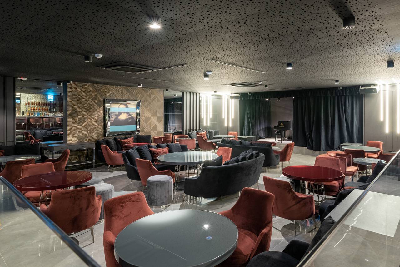 Com capacidade para 100 pessoas, o projeto do Room 1424 usa o piano como ponto principal. As poltronas e sofás próximos permitem interação com os artistas.