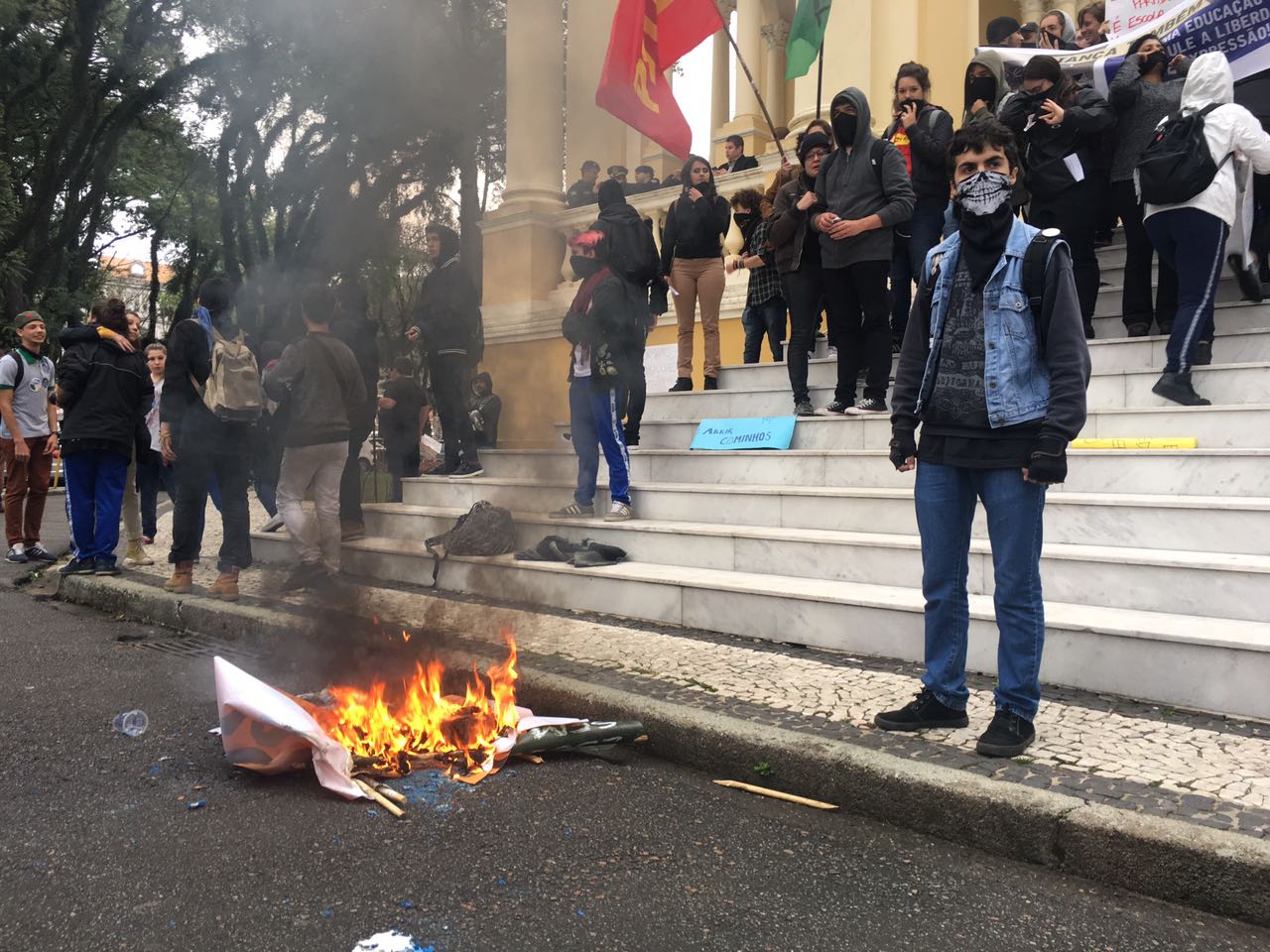 Cerca de 100 pessoas se reuniram em frente à Câmara Municipal de Curitiba em atos a favor e contra o projeto da Escola Sem Partido na manhã desta terça-feira (15). As manifestações foram organizadas pelas redes sociais. Apoiadores do Movimento Brasil Livre (MBL) e Acampamento Lava Jato se manifestaram a favor do projeto de lei que visa regular os conteúdos aplicados em sala de aula. Estudantes de colégios públicos e o movimento CWB Resiste bradaram contra a proposta.