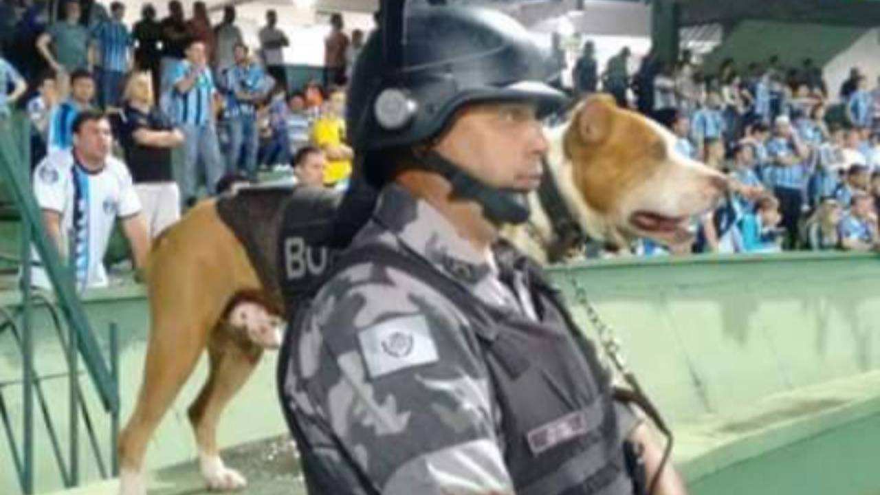 “Ninguém estava conseguindo dar conta dos torcedores e chamaram a gente com os cães. Pedimos para o pessoal parar com a confusão, porque não queríamos usar os cachorros. Foi quando eles debocharam. Aí fui soltando a guia, alguns foram dispersando, mas veio um cara com pedaço de pau, falando que o cachorro não ia morder. Soltei o Rock e ele foi direto nas nádegas do indivíduo”, descreve o soldado.