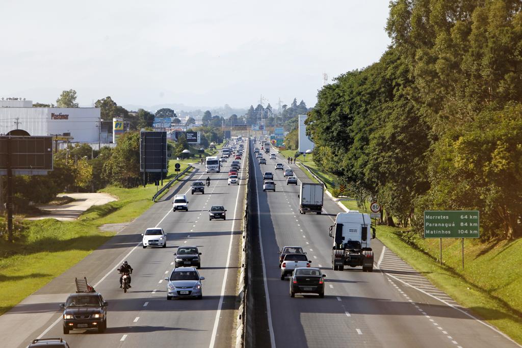 Na BR-376, o movimento de veículos está acima do normal, principalmente entre São José dos Pinhais e Tijucas do Sul, porém sem pontos de lentidão. A Autopista Litoral Sul, concessionária responsável pelo trecho, prevê que a circulação de veículos seja grande até as 14h. Cerca de 2.500 carros por hora estão a caminho de Santa Catarina. Já no sentido Paraná são mil carros por hora.