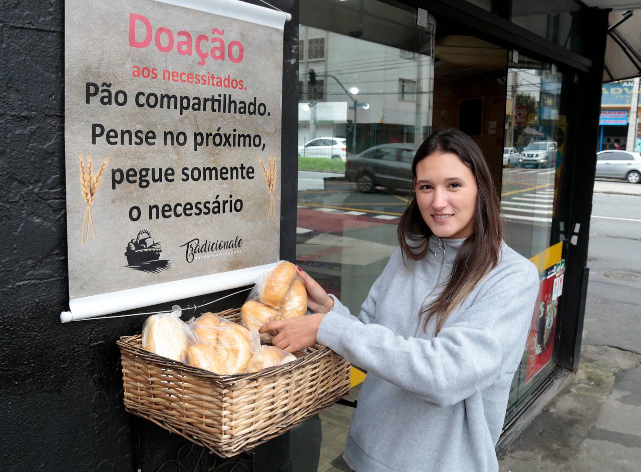 Uma panificadora no Centro de Curitiba faza uma ação que beneficia moradores de rua ou que trabalham nela. Todos os dias, uma cesta é colocada do lado de fora do estabelecimento com pães e salgados que sobraram do dia anterior para que quem passa pelo local.