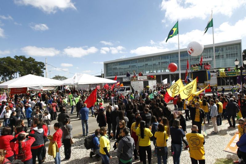 Nesta sexta, as centrais sindicais convocaram os trabalhadores para protestar justamente na Praça Nossa Senhora de Salette. A manifestação acontece desde as 9h e por volta das 11h deve partir no sentido da Praça Tiradentes, no Centro.