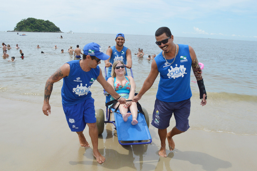 As cadeiras anfíbias fazem parte do programa Praia Acessível, desenvolvido pelo governo do estado em parceria com a Sanepar e Copel Telecom.