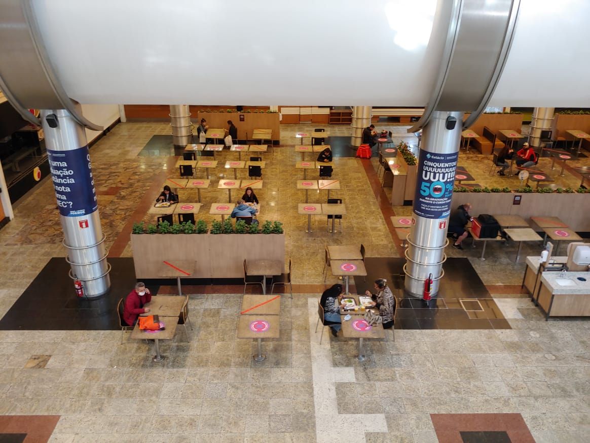 Todos que entram nos shoppings têm a temperatura medida. As escadas rolantes tem marcações para respeitar a distância de dois degraus de circulação, assim como as mesas das praças de alimentação. Porém, muitas lojas e restaurantes permaneceram fechados, dando a impressão de que o shopping estava em funcionamento parcial.