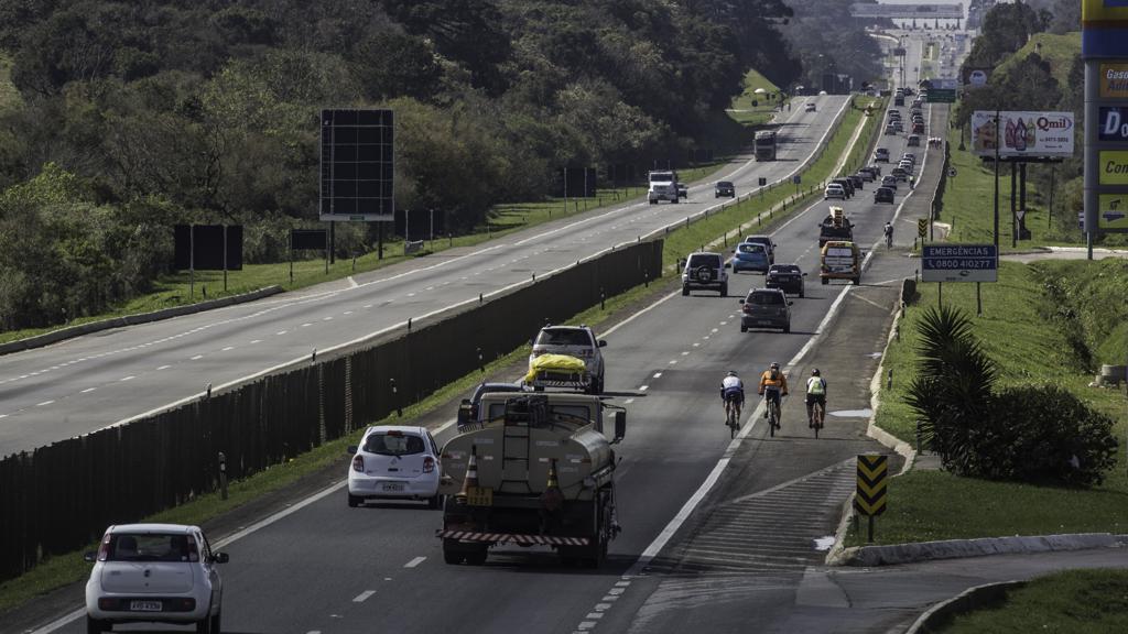 O Contorno Leste, em Curitiba, também apresenta fluxo intenso no fim da tarde deste domingo. O tráfego pesado segue nos dois sentidos, mas sem registros de lentidão ou retenção, segundo a Litoral Sul.