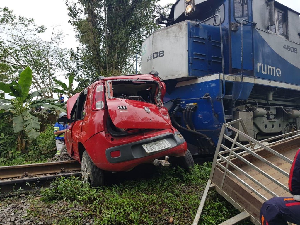 Uma mulher de 53 anos morreu após o carro em que estava ter sido atingido por um trem na manhã desta sexta-feira (23) em Morretes, no Litoral do estado. De acordo com o Corpo de Bombeiros, o veículo teria falhado sobre a linha férrea e o motorista não percebeu a aproximação da locomotiva. Com o impacto, o veículo foi arrastado por cerca de 200 metros e a mulher morreu na hora. O motorista de 78 anos e um adolescente que também estavam no carro escaparam ilesos.