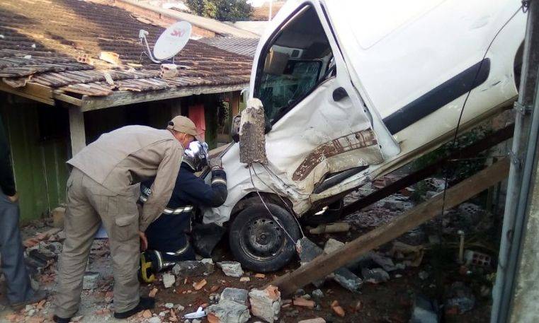 Uma van invadiu um terreno e ficou pendurada no muro de uma residência, depois de ter sido atingida por um carro que teria furado a preferencial no cruzamento da Rua Flores com a Rua Jasmins, em Colombo, na Região Metropolitana de Curitiba, por volta das 16h. Uma mulher que estava no lado do passageiro do carro bateu o rosto e o ferimento sangrou bastante. Segundo testemunhas, ela chegou a ficar desorientada ao sair do veículo.