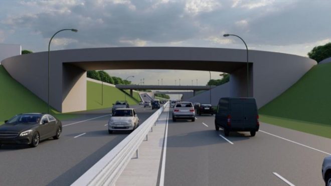 Para isso, duas novas transposições serão construídas no acesso de ambas as pistas da estrada, exigindo a revitalização viária dos cruzamentos da Rua Professor João Falarz e da Avenida Vereador Toaldo Túlio com a BR-277. Com o trânsito desviado para as novas transposições, a estrutura do atual viaduto vai virar uma travessia de pedestres e ciclistas, com possibilidade até de receber feiras livres.