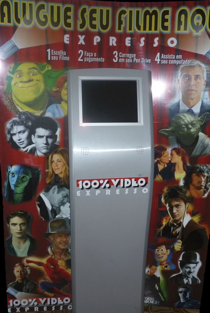 A 100% Vídeo lançará nos próximos dois meses o serviço de locação e compra de filmes por pen drive. Segundo o gerente geral da empresa, Itiel Loureiro, num primeiro momento serão instalados dois terminais para download de filmes em São Paulo os chamados totens , que terão três mil títulos disponíveis em qualidade HD e Full HD. A ideia desse serviço é dar mais comodidade aos sócios da rede, que poderão pegar os filmes que quiserem sem precisar ir à locadora ou se preocupar com a devolução. Dentre os planos da empresa está a instalação dos totens em shoppings, aeroportos, supermercados e lojas de conveniência.