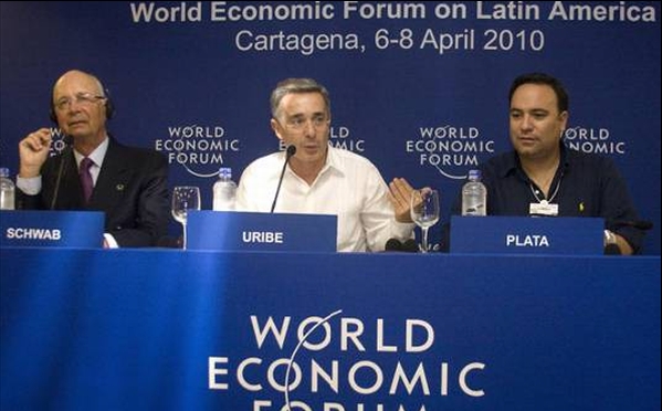 Uribe chegou nesta terça a Cartagena de Índias, na Colômbia, cidade que sediará a quinta edição do Fórum Econômico Global na América Latina até quinta-feira (8). Ele falou à imprensa acompanhado do presidente do Fórum Econômico Global, Klaus Schwab, e do ministro do Comércio colombiano, Guillermo Plata.