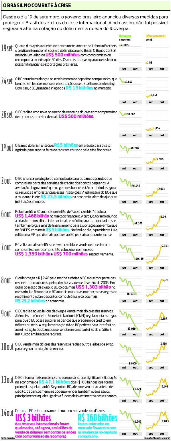 Na avaliação do economista-chefe para América Latina do Santander, Alexandre Schwartsman, as ações dos governos norte-americano e europeus atacaram a questão mais grave, que era a restrição do crédito em função dos ativos de má qualidade dos bancos, e minimizaram os problemas de solvência e liquidez. "O risco de derretimento do sistema financeiro internacional foi evitado. Vamos conseguir estabilizar problema. Mas o que vem depois não é bonito", disse. O economista lembrou que as previsões de crescimento econômico mundial do Fundo Monetário Internacional (FMI) para 2009, revisado de 3,9% em julho para 3% na semana passada, são muito otimistas. Para ele, as restrições de crédito devem continuar e o mundo, embora não mergulhe num processo de depressão, passará por uma recessão.