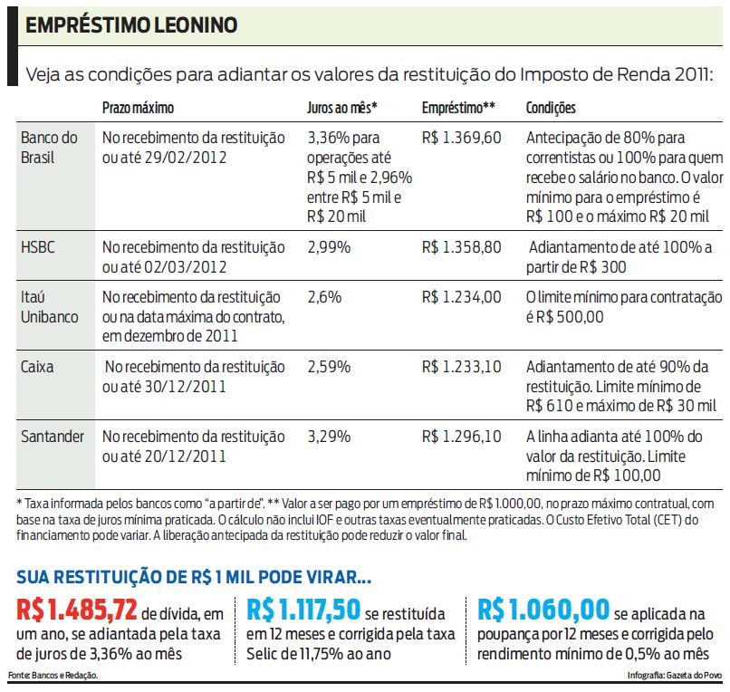 Nem bem começou o prazo oficial para a entrega da declaração do Imposto de Renda 2011, na última semana, e os bancos iniciaram campanhas agressivas para divulgar suas linhas de crédito de adiantamento da restituição. Mas especialistas alertam que é preciso cuidado ao contratar esse tipo de crédito, para que o que é oferecido como um benefício não se torne mais uma forma de endividamento.