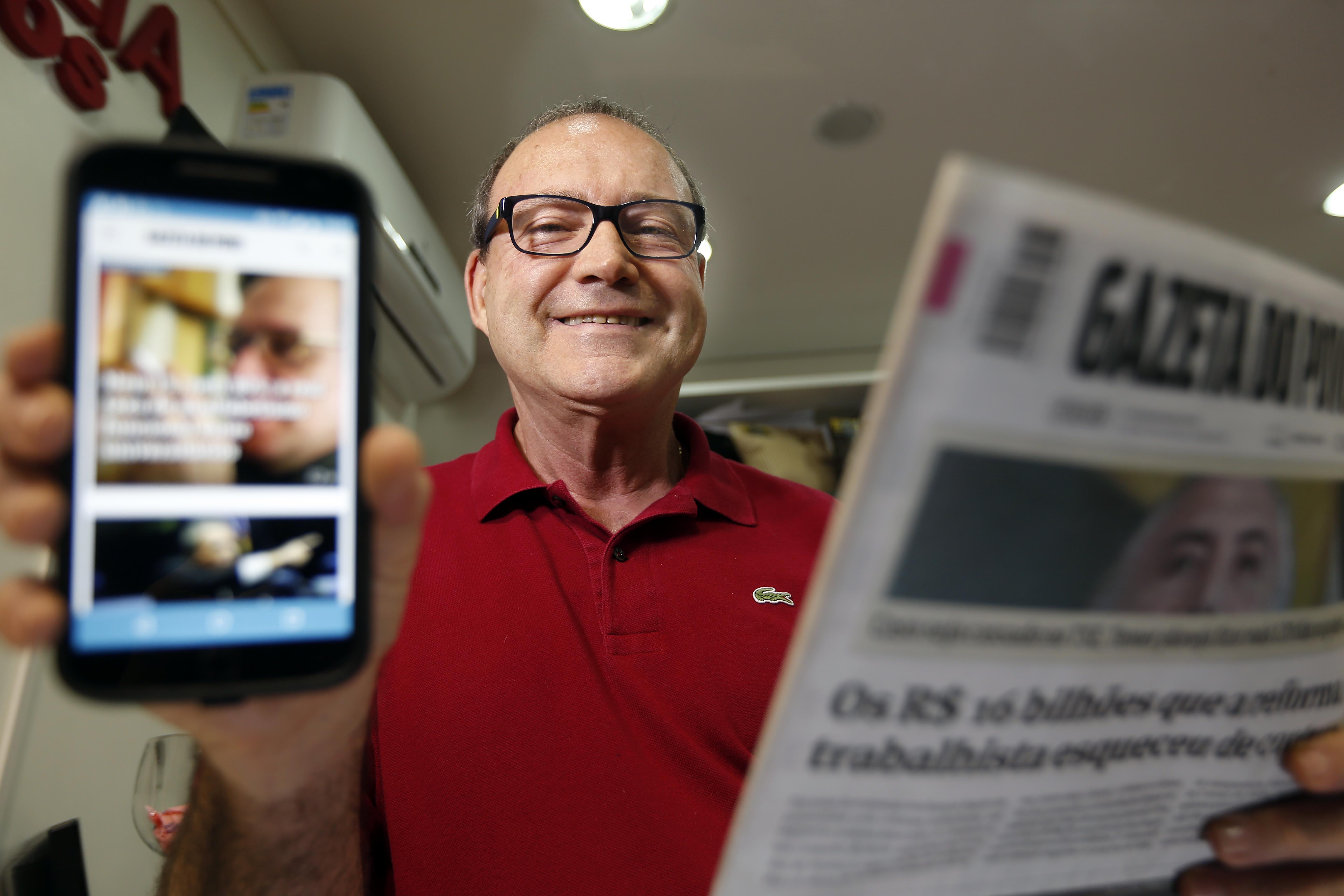 O empresário Paulo Cesar Batista Junger da Silva, de 67 anos, assinante desde 2000, entende como “uma tendência mundial, natural das comunicações” a mudança pela qual o jornal está passando. “Estou feliz porque a Gazeta faz um movimento junto com grandes jornais e na frente de outros. Está fazendo no tempo certo”, avalia. Para o empresário, ler a Gazeta faz parte da rotina diária. “Tenho por hábito a leitura e me mantenho atualizado. Já li o jornal de ontem pelo celular e hoje já dei uma passada. Agora entro direto na informação que eu quero”, conta.