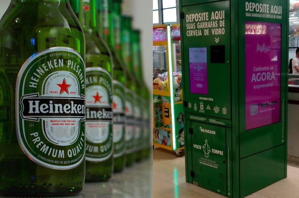 A Heineken lançou uma ação em São Paulo para incentivar o descarte correto de resíduos. Para isso, espalhou nove máquinas de triturador de vidro em algumas unidades dos supermercados Extra e Pão de Açúcar. A cada garrafa depositada, o cliente recebe R$ 0,10 em compras no aplicativo da startup Méliuz, parceira da cervejaria no projeto.