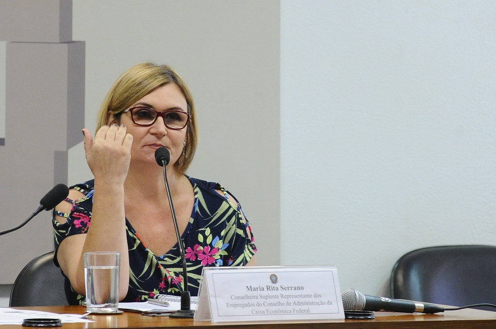 Rita Serrano tem 33 anos de Caixa Econômica Federal, sendo a atual representante dos empregados eleita para o Conselho de Administração do banco estatal, cargo que ocupa desde 2014. Ela já desempenhou diversas funções e foi, entre 2006 e 2012, presidente do Sindicato dos Bancários do ABC Paulista. Atualmente, ela é uma das líderes do movimento de defesa das empresas públicas. Com informações da Agência Brasil.