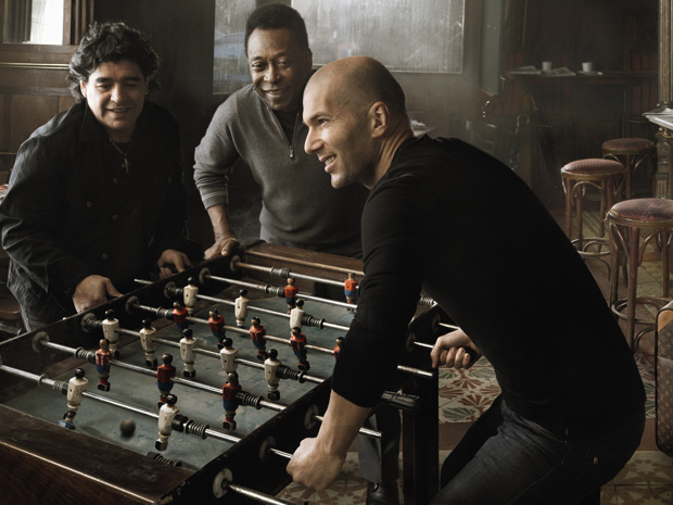 Campanha publicitária da marca francesa Louis Vitton divulgada nesta quinta-feira (22) reúne três ícones do futebol mundial: brasileiro Pelé, o argentino Diego Maradona e o francês Zinedine Zidane, que aparecem disputando uma partida de futebol de mesa.