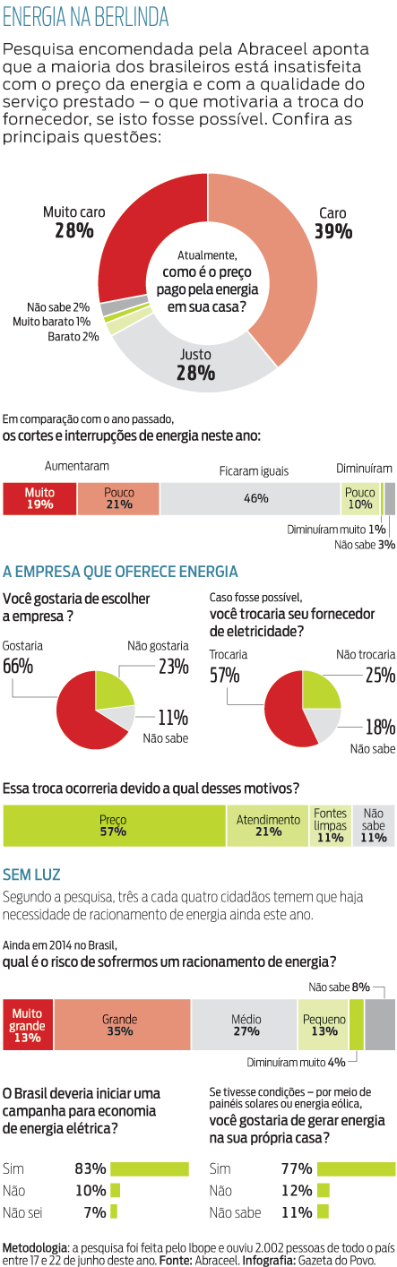 A pesquisa foi encomendada pela própria Abraceel e divulgada no lançamento da campanha "A Energia da Democracia é Livre", promovida pela associação em parceria com empresas e entidades. A abertura do mercado de energia no país é uma reivindicação antiga e encontra respaldo de estudiosos do setor, mas esbarra ainda em questões legais e falta de vontade política.