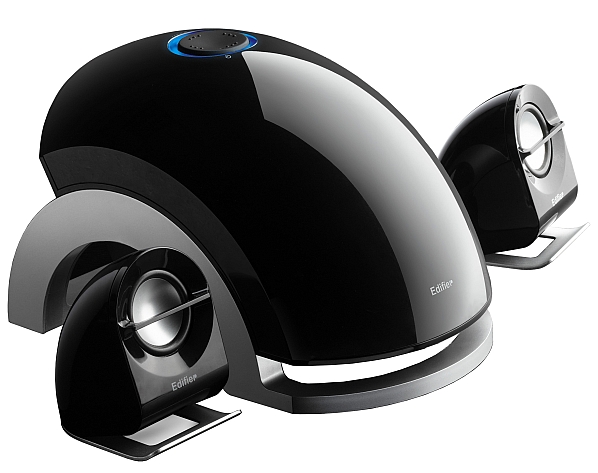 O E1100, sistema de som para computadores da Edifier, é surpreendente: tem um design em forma de concha, em alumínio. A empresa promete uma qualidade de som compatível com home theatre, com ótimos médios e agudos cristalinos. As caixas usam fonte de alimentação externa e promete grande capacidade de volume e graves profundos, apesar do tamanho (o peso aproximado do conjunto é de 3,5 quilos). O preço sugerido é de R$ 272,00.