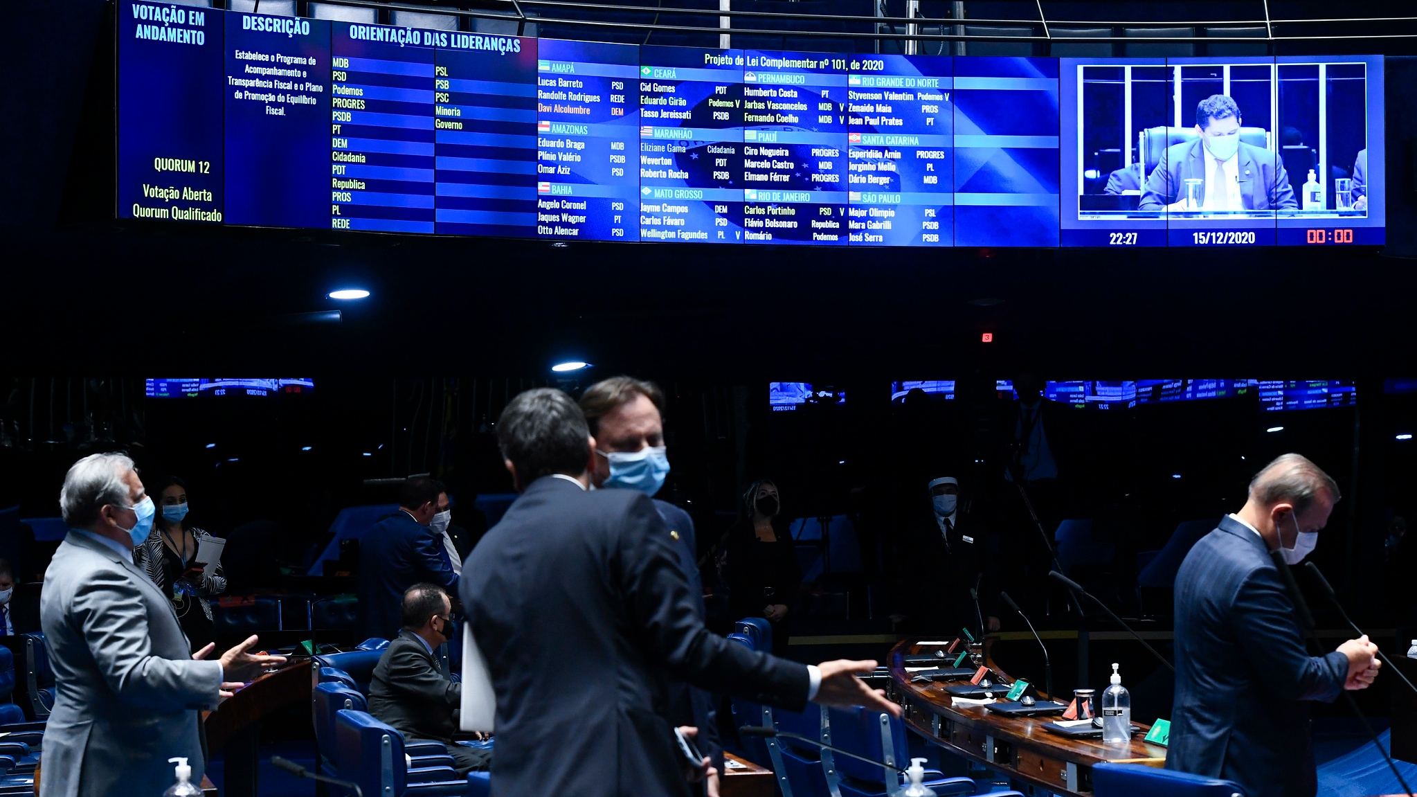 "Com certeza, amanhã em todos os estados e municípios brasileiros, nós seremos o Senado da República exaltado por estarmos deliberando às 10 horas e 22 minutos do dia 15 de dezembro essa matéria tão importante", afirmou o presidente da Casa, Davi Alcolumbre, segundo o jornal "O Estado de S. Paulo".