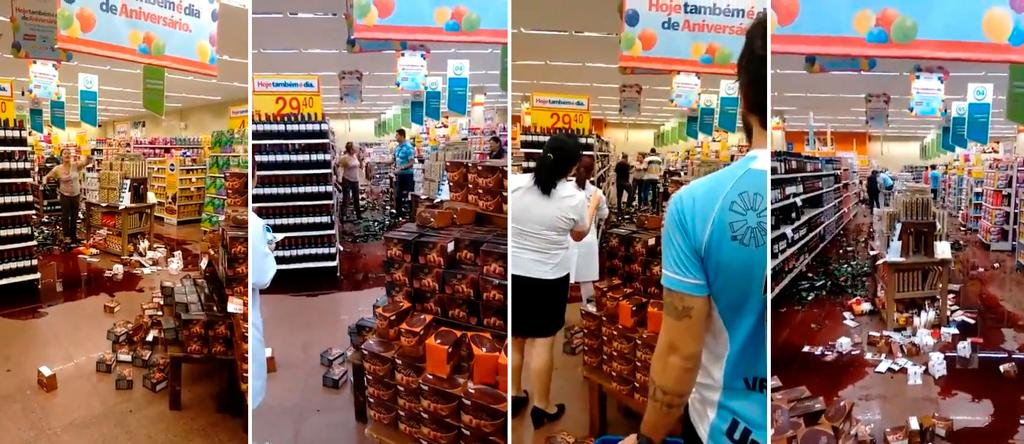 A consumidora só parou de quebrar os produtos quando consumidores e funcionários do supermercado conseguiram se aproximar dela e imobilizá-la, afastando-a da seção de vinhos.