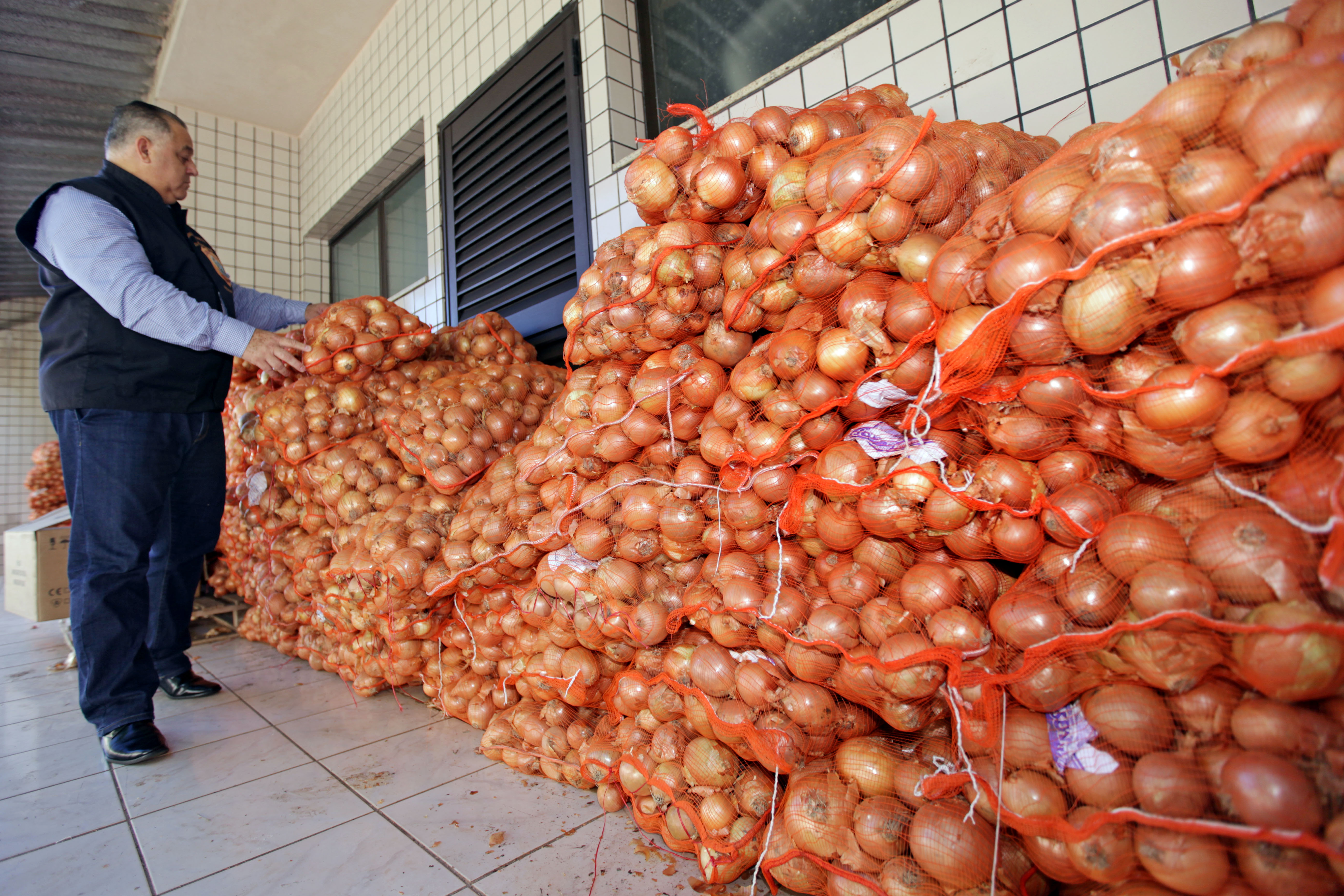 A cebola, distribuída em 150 sacos, era transportada em cinco vans de placa paraguaia. O superintendente federal do Ministério da Agricultura do Paraná, Daniel Gonçalves Filho, diz que o produto, de origem argentina e sem certificado fitossanitário, foi levado ao Paraguai para depois entrar no Brasil. A tentativa é desviar da fiscalização na Ponte Tancredo Neves, onde a vistoria está mais rígida.