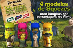 A empresa Kraft Foods Brasil está recolhendo 75 mil copos de uma promoção oferecida por suas marcas Royal, Tang e Trakinas. Os squeezes, como são chamados esses tipos de copo, são caracterizados com os personagens do filme "Shrek para Sempre" e trazem riscos às crianças, segundo a Kraft Foods.