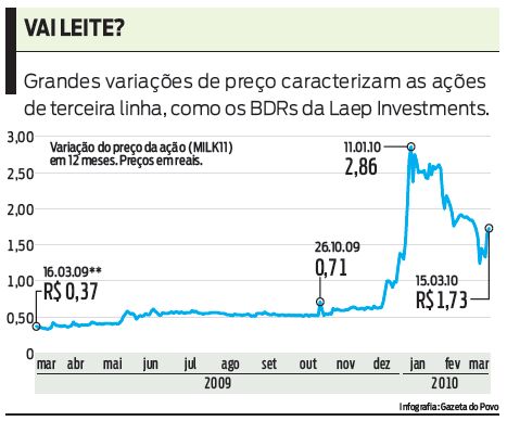 Entre os casos mais rumorosos de ações desse tipo está o dos papéis da Telebrás, que chegaram a ter uma valorização de mais de 300%, mas que só este mês já perderam 40% de seu valor. Outras ações na mesma situação são as dos Hotéis Othon e os BDRs da Laep Investments, empresa com sede nas Bermudas que é dona da Parmalat Brasil (BDRs são recibos de ações de empresas estrangeiras negociadas em bolsas do Brasil).