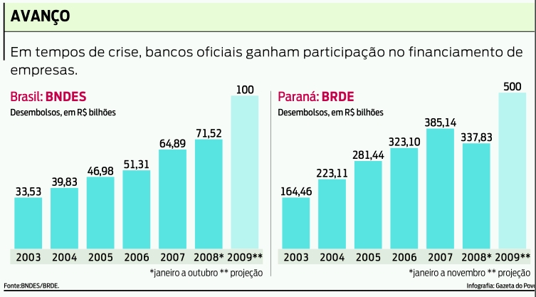 A crise está alterando o mapa de financiamento das empresas. O crédito escasso tanto no mercado interno como no externo e o mercado de capitais praticamente fechado para o lançamento de ações estão fazendo com que as empresas voltem a buscar o Banco Nacional de Desenvolvimento Econômico Social (BNDES) para o aporte de recursos. O aumento da procura por crédito nesse momento de instabilidade já levou o banco oficial a alcançar o valor de R$ 71,52 bilhões em empréstimos de janeiro a outubro. A expectativa é terminar o ano com R$ 90 bilhões, um avanço de 38% sobre o ano anterior. Para 2009, o banco projeta empréstimos de R$ 100 bilhões, volume 11% acima do previsto para este ano.