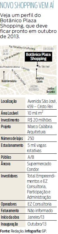 Os investidores serão a Total Empreendimentos e a EZ Consultoria, Participação e Administração, que também será responsável pela operação do shopping. A previsão de faturamento não foi informada.