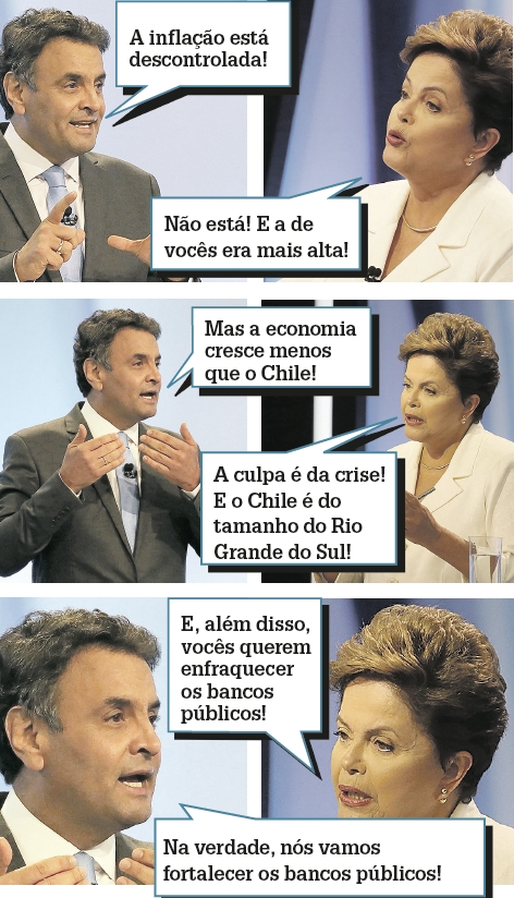 "Debate mesmo ocorreu entre o ministro Guido Mantega e o Armínio Fraga [escalado por Aécio para o Ministério da Fazenda], na Globonews. Nem Aécio nem Dilma querem entrar em detalhes, para não se complicar."