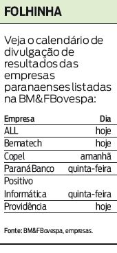 Esta é uma semana agitada para as empresas paranaenses com ações negociadas na BM&FBovespa. Todas as seis companhias agendaram para esta semana suas apresentações de resultados. A sequência começa com América Latina Logística (ALL), Bematech e Companhia Providência, que divulgam seus balanços hoje.