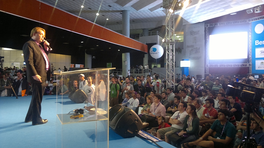 A abolição do sistema de patentes e a reforma das leis de direito autoral foram dois dos pontos principais da palestra do ativista suéco e fundador do Partido Pirata, Rick Falkvinge, que lotou o palco central da Campus Party Recife na noite de sexta-feira (27). Durante cerca de uma hora, ele falou sobre seus ideais, sobre o partido e sua trajetória pessoal, arrancando aplausos dos campuseiros.