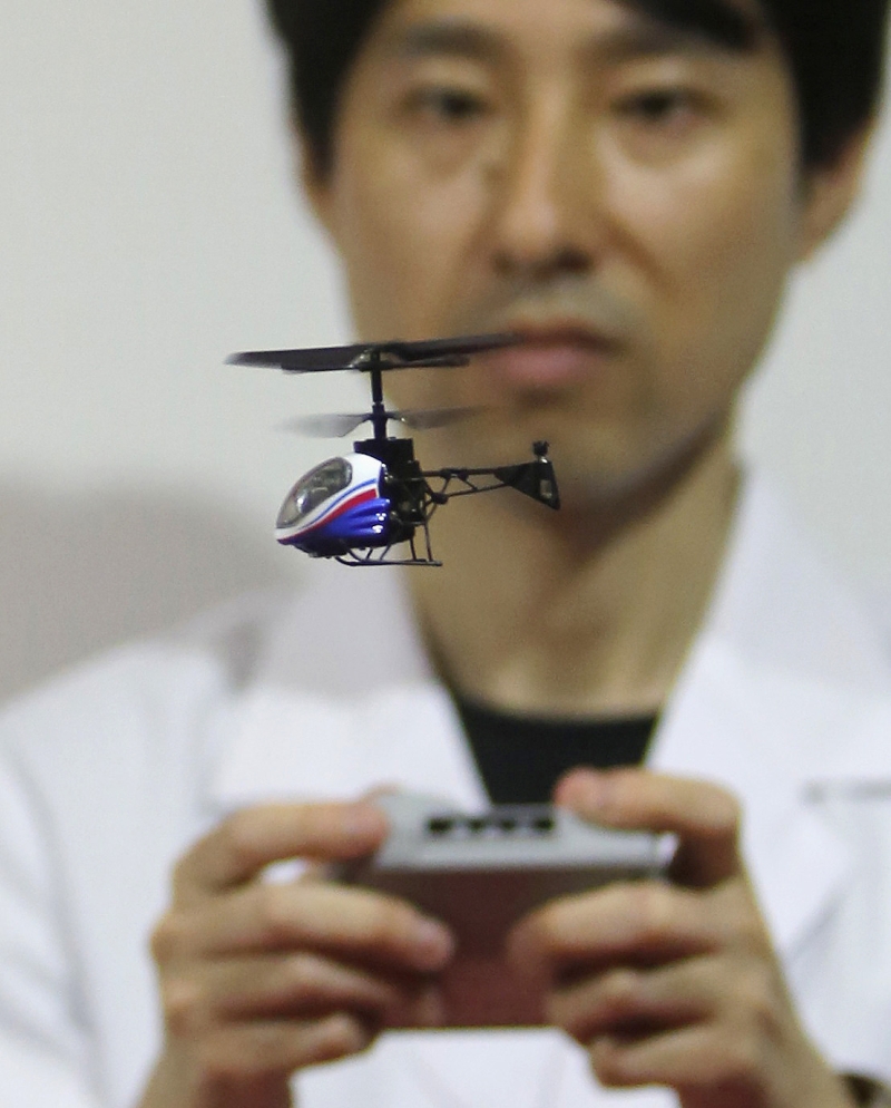 Peso: 11 gramas. Comprimento: 6,5 centímetros. O Nano Falcon (ao lado) é o menor helicóptero de controle remoto do mundo, e foi lançado ontem no International Toy Show de Tóquio, uma exposição da indústria de brinquedos, pela companhia japonesa CCP. O aparelhinho, que deve ser carregado na rede elétrica por pelo menos meia hora, tem autonomia de voo de cinco minutos e pode se distanciar até cinco metros do controle. Estará à venda pelo equivalente a US$ 48, no mês que vem.