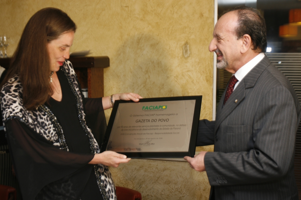 A vice-presidente da RPC, Ana Amélia Filizola, recebeu esta semana do presidente da Federação das Associações Comerciais e Empresariais do Paraná (Faciap), Ardisson Akel, uma placa em homenagem aos 90 anos da Gazeta do Povo. De acordo com a entidade, há nove décadas o jornal presta "relevantes serviços à comunidade na defesa da livre iniciativa e do desenvolvimento do estado".