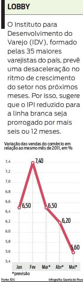 O benefício, que foi anunciado em dezembro, cortou, entre outros, o IPI da geladeira de 15% para 5% e o do fogão de 4% para zero. A princípio, ele termina no próximo dia 31, mas fontes da equipe eonômica dizem que ele deve mesmo ser prorrogado, como quer o varejo.